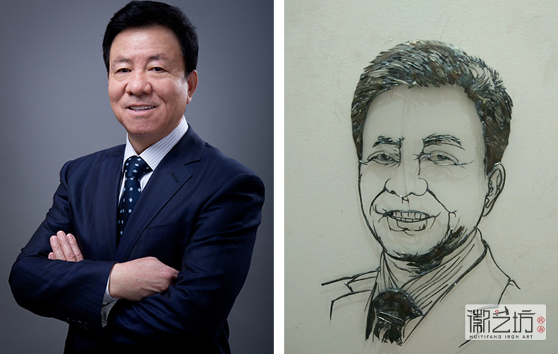 萬達(dá)副總裁丁本錫人物肖像鐵畫